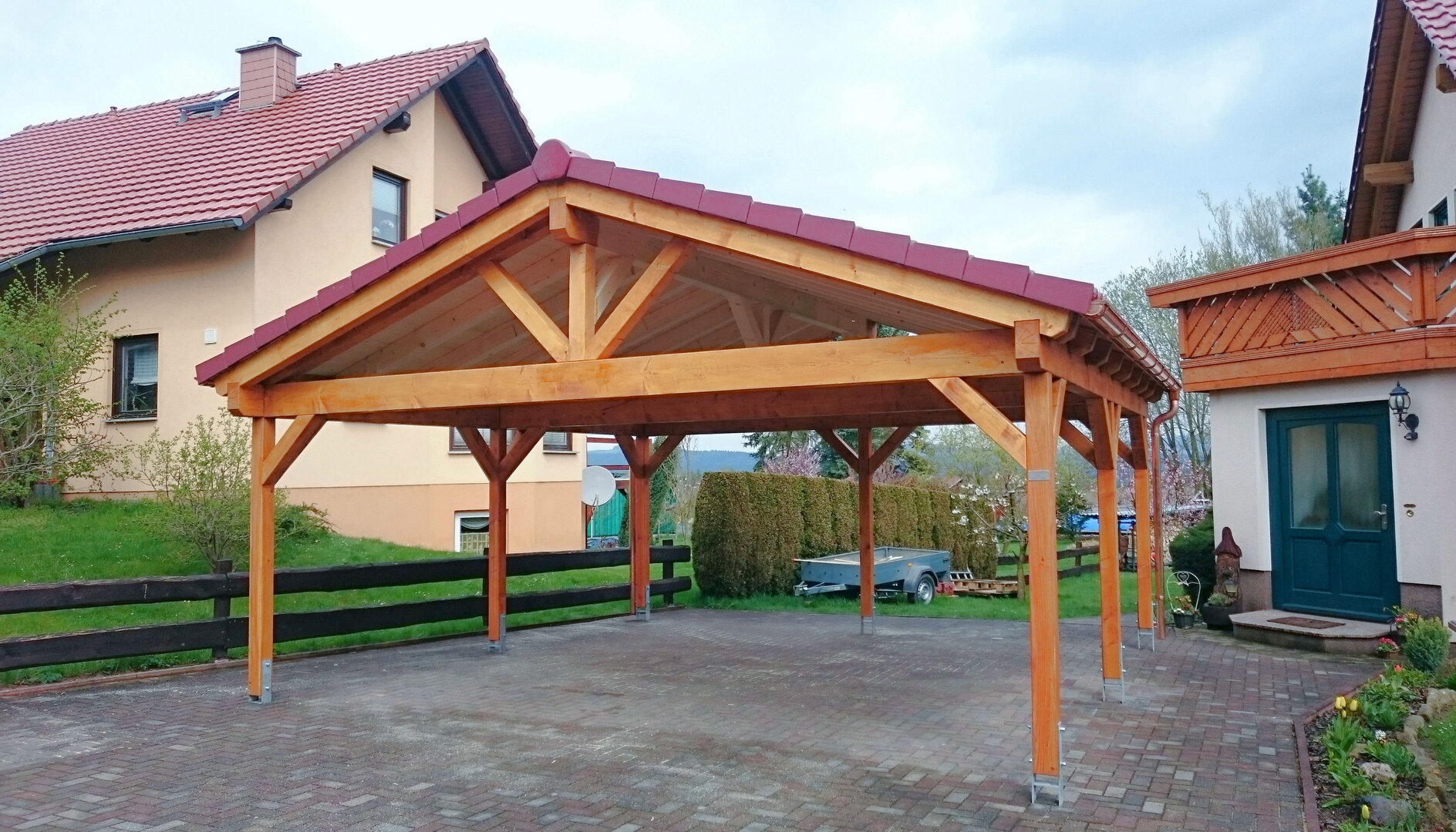 Doppelcarport mit Satteldach und Ziegeldeckung